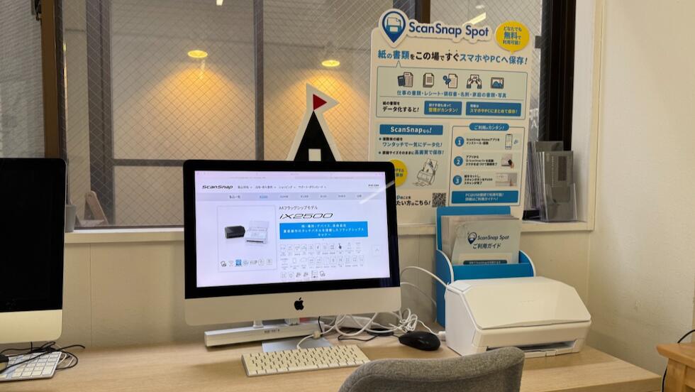 2024年6月より「ScanSnap タッチ&トライスポット」として、ベースキャンプ名古屋をご利用の方に、ScanSnap をご利用いただいていましたが、この 2026年2月から「ScanSnap Spot」と名称が変わり、機器も新しい iX2500 にアップデートされました。