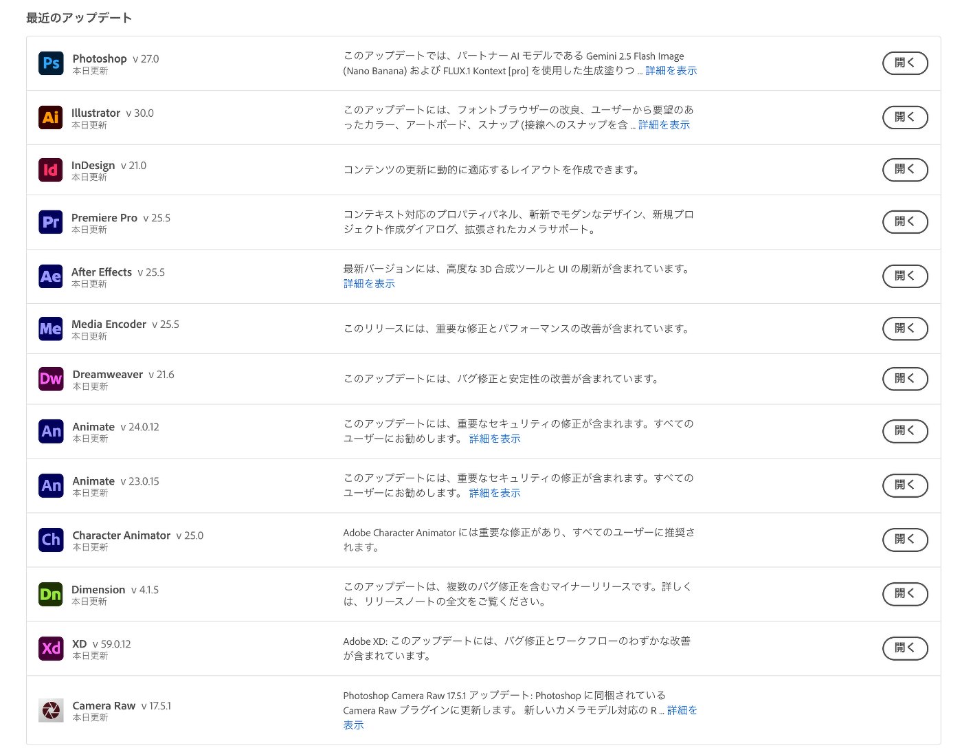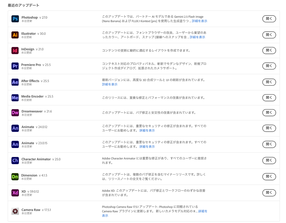 Adobe Creative Cloud アップデート詳細情報