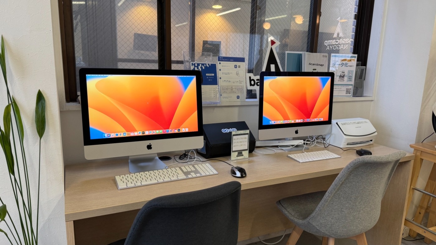 ベースキャンプ名古屋では、貸し出しの PC として少し古くて申し訳ありませんが、2017年モデルの iMac ( intel ) macOS Ventura 13.7.8 をゲストモードで提供しています。ゲストモードということで、アプリケーションのインストールができず、さらにログアウトした際にはデータも削除されるような運用になりますので、データの取り扱いについては気をつけてください。