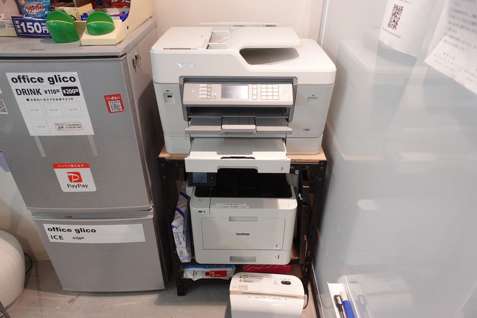 Brother レーザープリンタ ( HL-L8360CDW )と、 Brother 高耐久&A3フル対応インクジェット ( MFC-J6983CDW )をご用意しています。インクジェット複合機は、コピーやFAX、カラースキャナーもご利用可能です。(PCより印刷する場合にはドライバのインストールが必要です。詳しくは料金表下の”ドライバ”をご確認ください。)